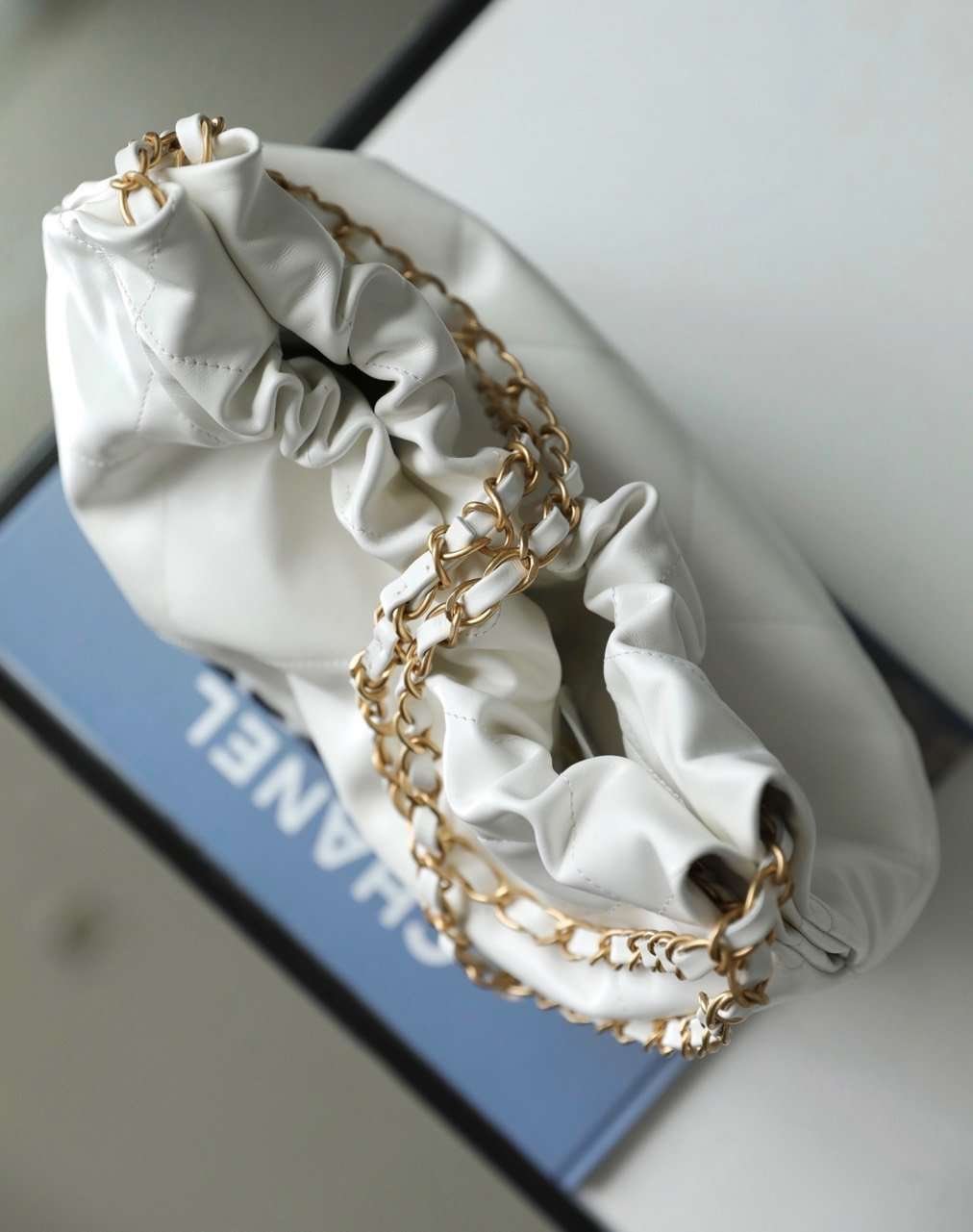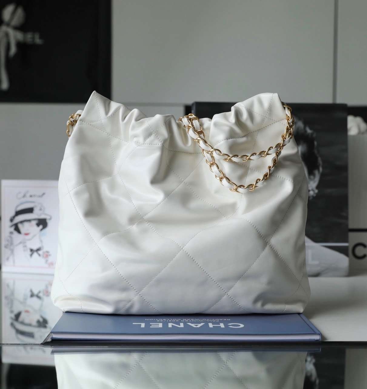 Chanel 11 Handbag 22 Shopping Woman’s White Smooth Leather 35cm - LuxuryRepBags
