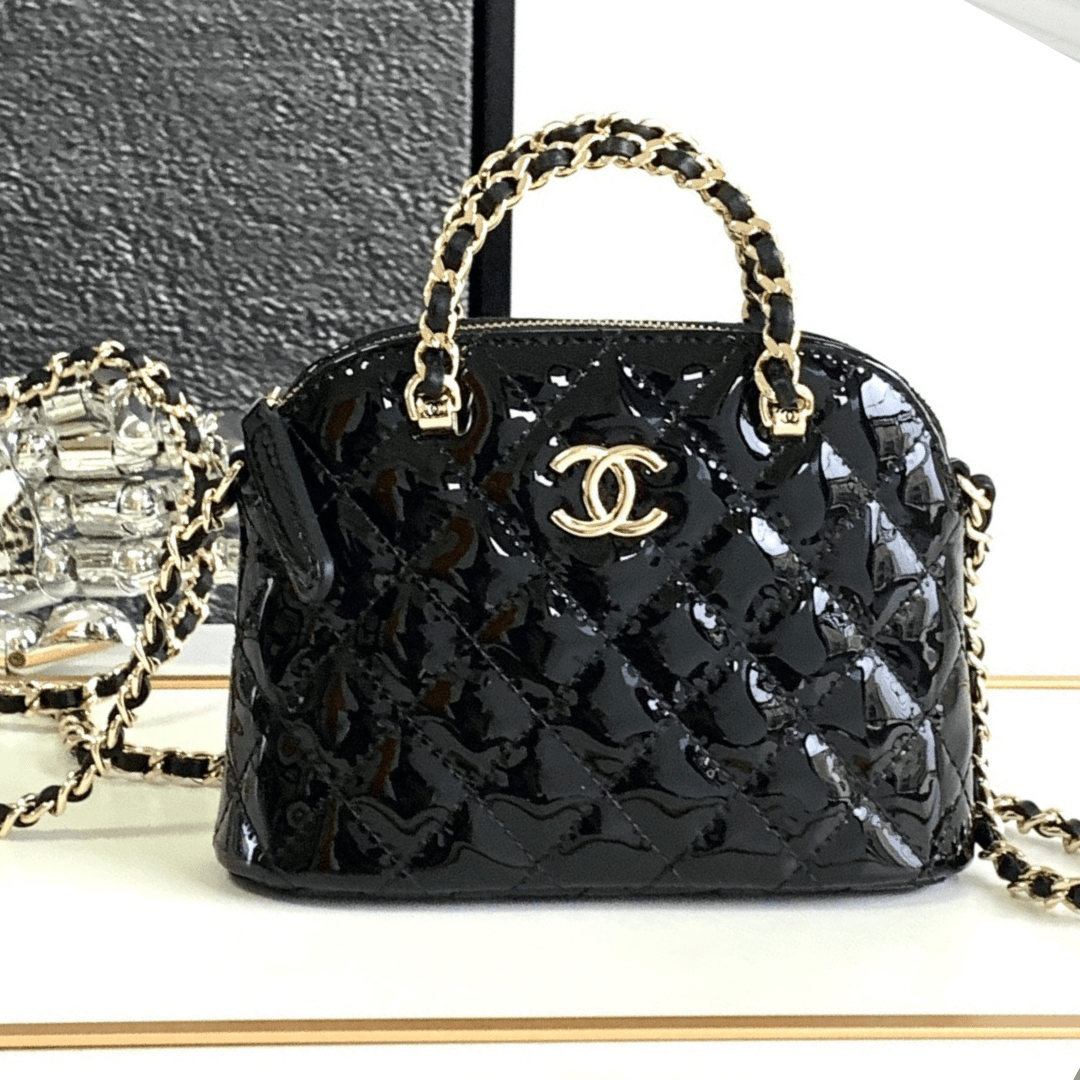 Chanel Alma Mini Shiny Leather Handbags Black Lock Gold 12cm