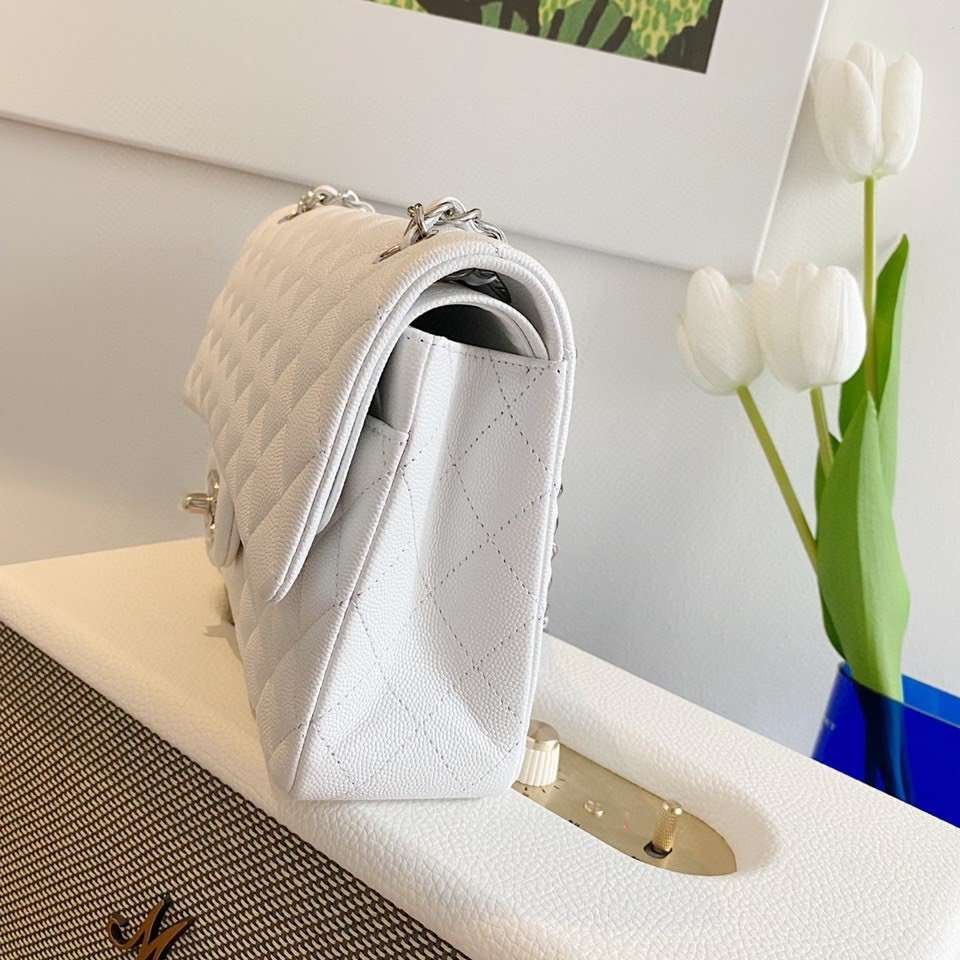 Chanel Classic Handbags Lizard Skin White With Silver Lock 25cm - LuxuryRepBags