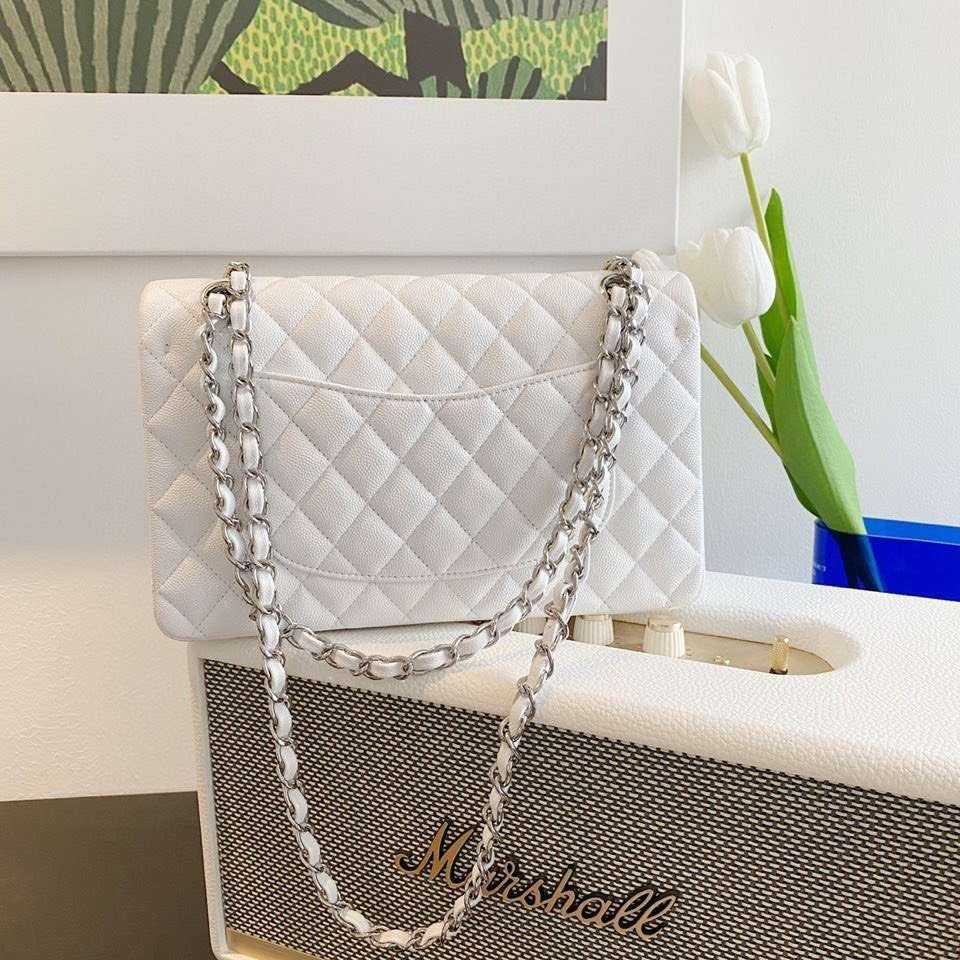 Be the first to review “Chanel Classic Handbags Lizard Skin White With Silver Lock 25cm”
