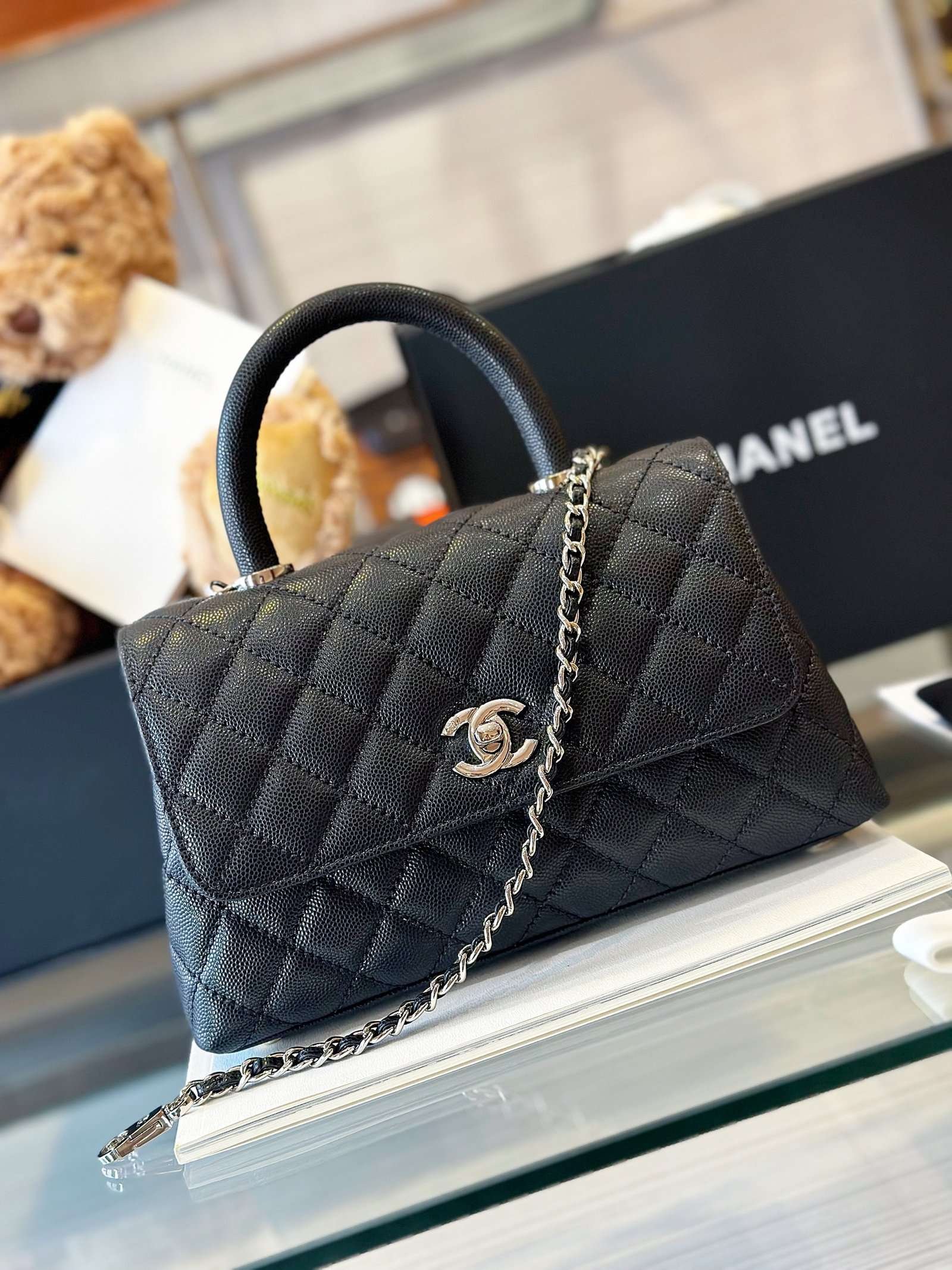 Chanel Coco Handbag Leather Black With Silver Lock 23cm - LuxuryRepBags