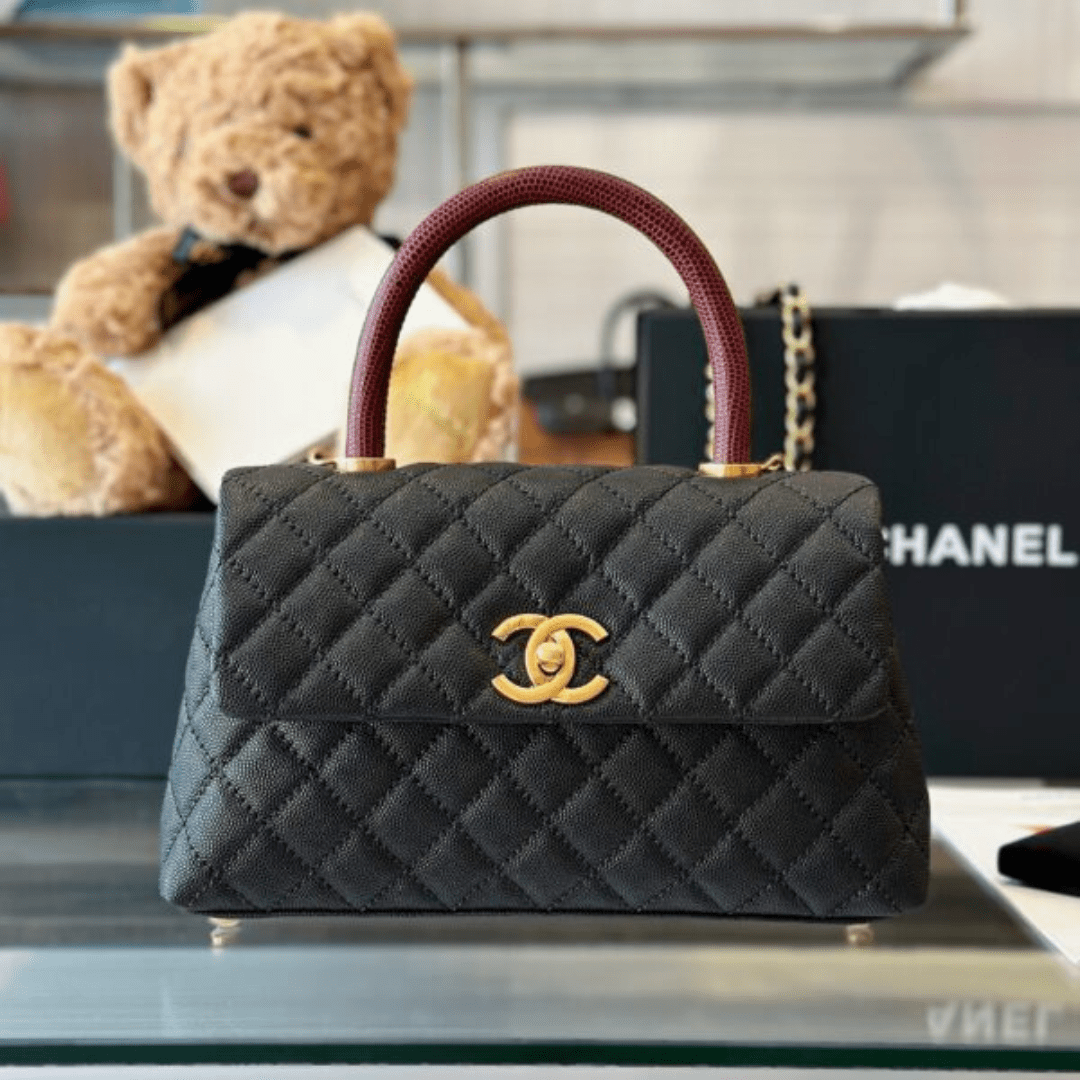 Chanel Handbag Coco Lock Gold Lizard Skin Black 24cm - LuxuryRepBags