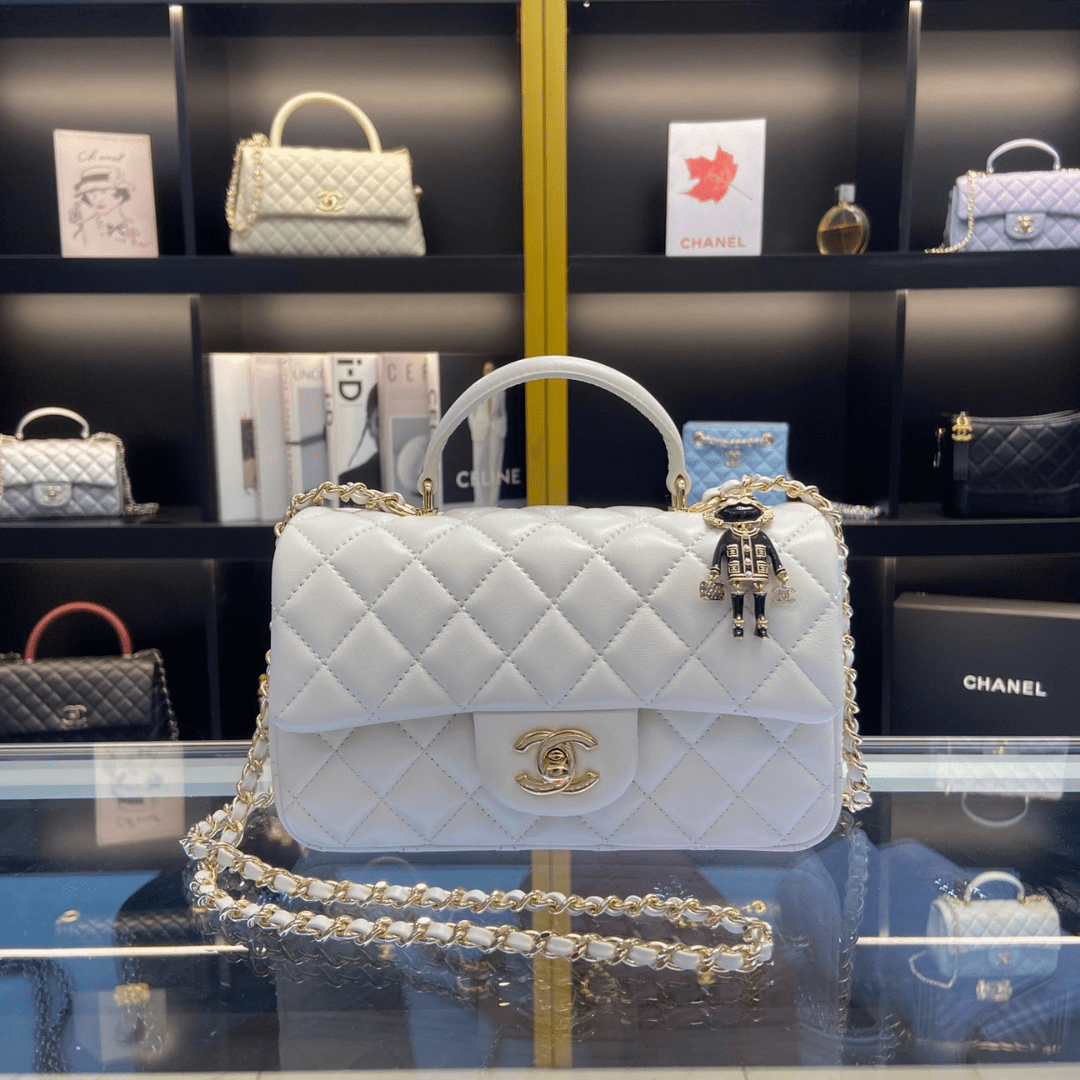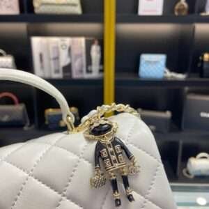 Chanel Handle Charm Like Auth Handbags Lock Gold Demi White 20x12cm - LuxuryRepBags
