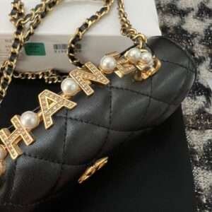 Be the first to review “Chanel Woc Black Handbags Pearl Handle Plated Lock Gold 19cm”