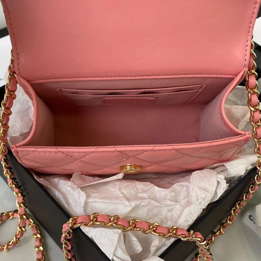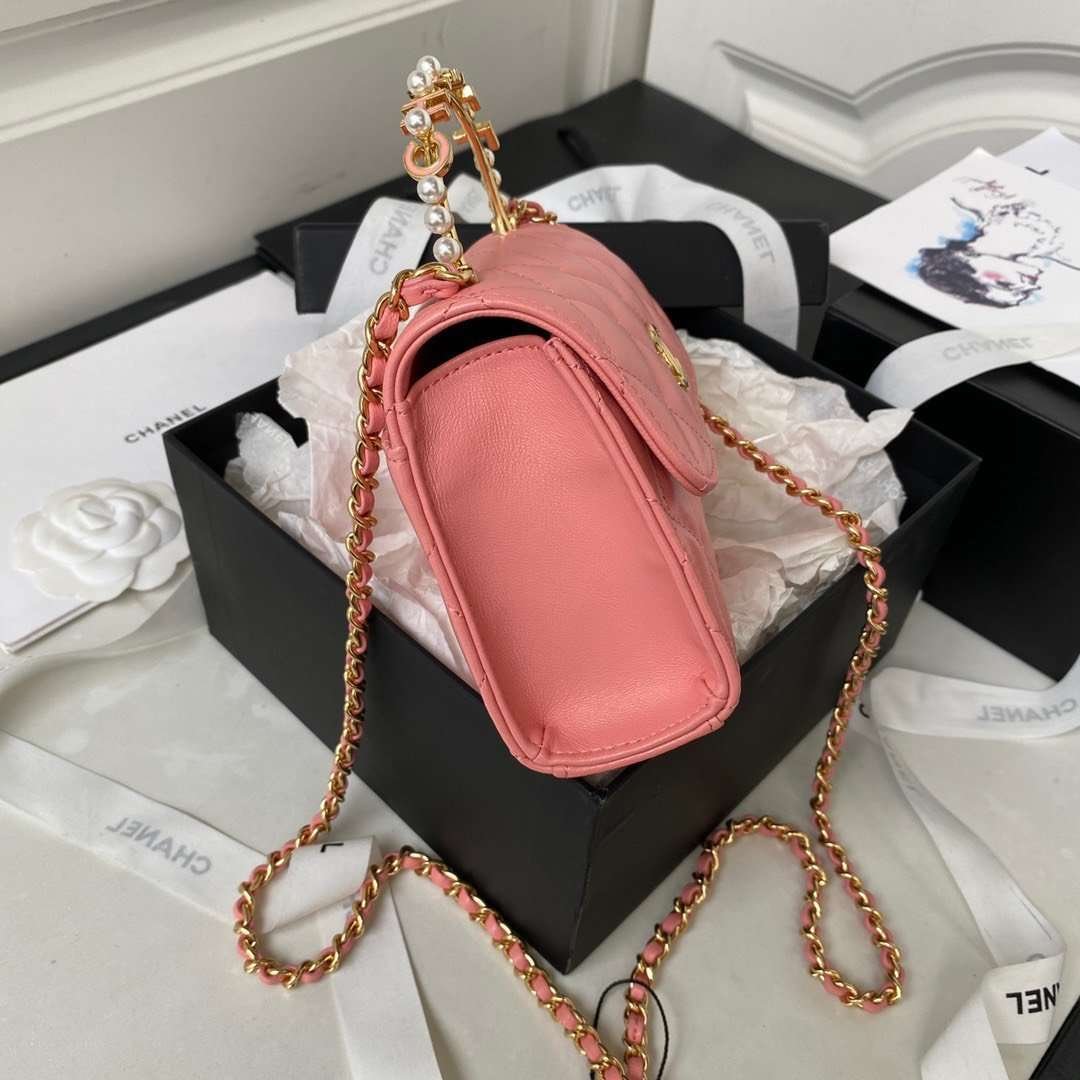 Chanel Woc Pink Handbags With Pearl Handle 11.5×14.5×5.5cm
