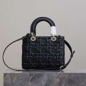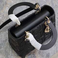 DIOR LADY BAG 24 IN BLACK GRAPHIC CANNAGE CALFSKIN PALE GOLD-FINISH METAL CHARMS - LuxuryRepBags