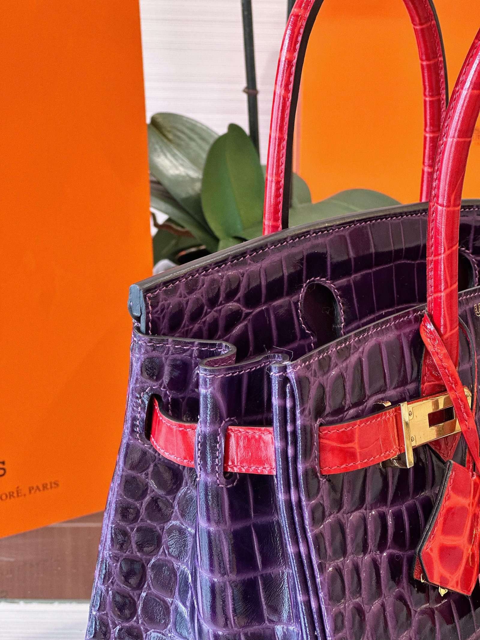 Hermes Birkin Crocodile Purple With Handle Red 30cm - ModeRep