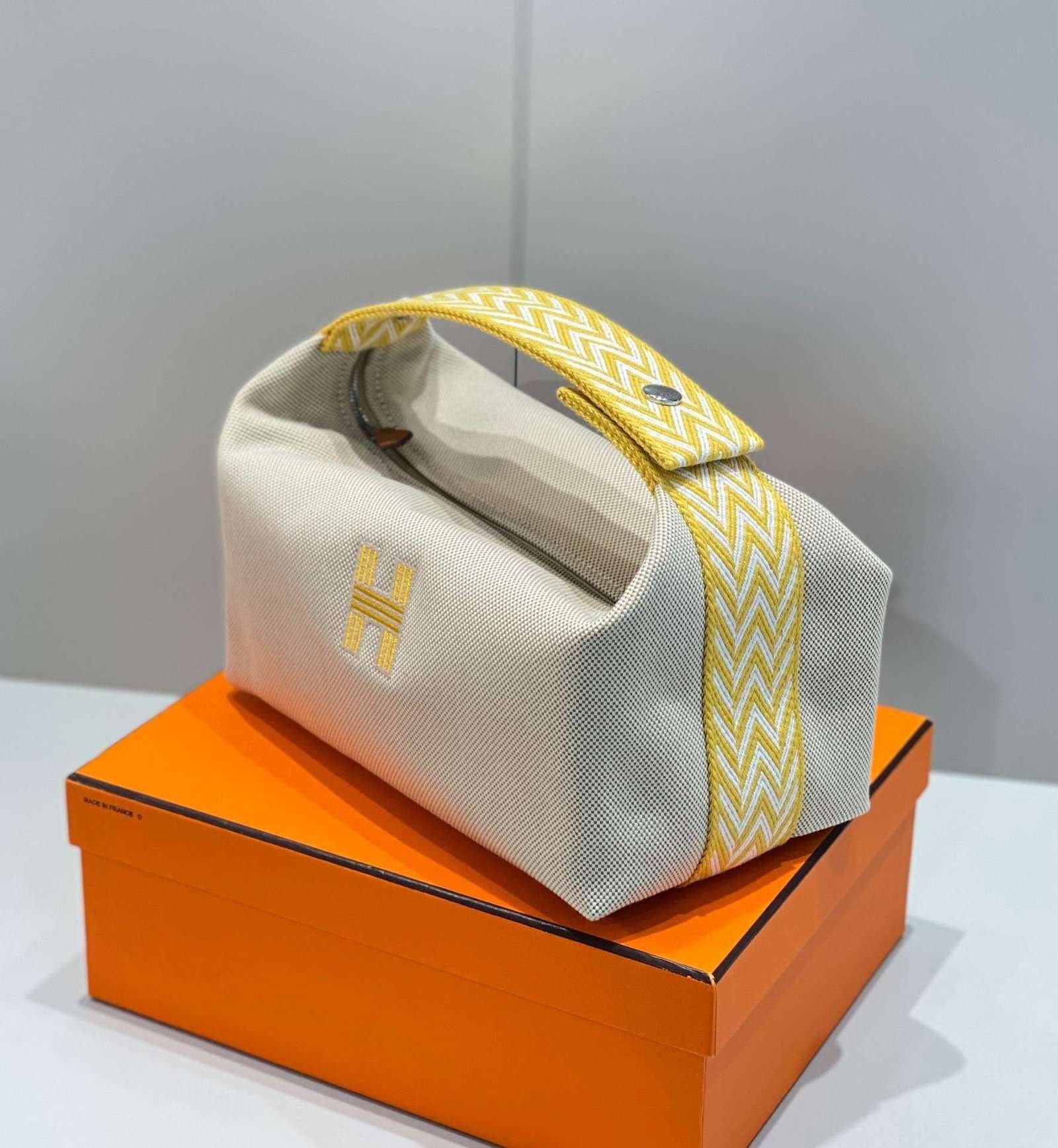 Hermes Bride A Brac PM Clutch Bag Yellow Fabric 12x20x10cm - ModeRep